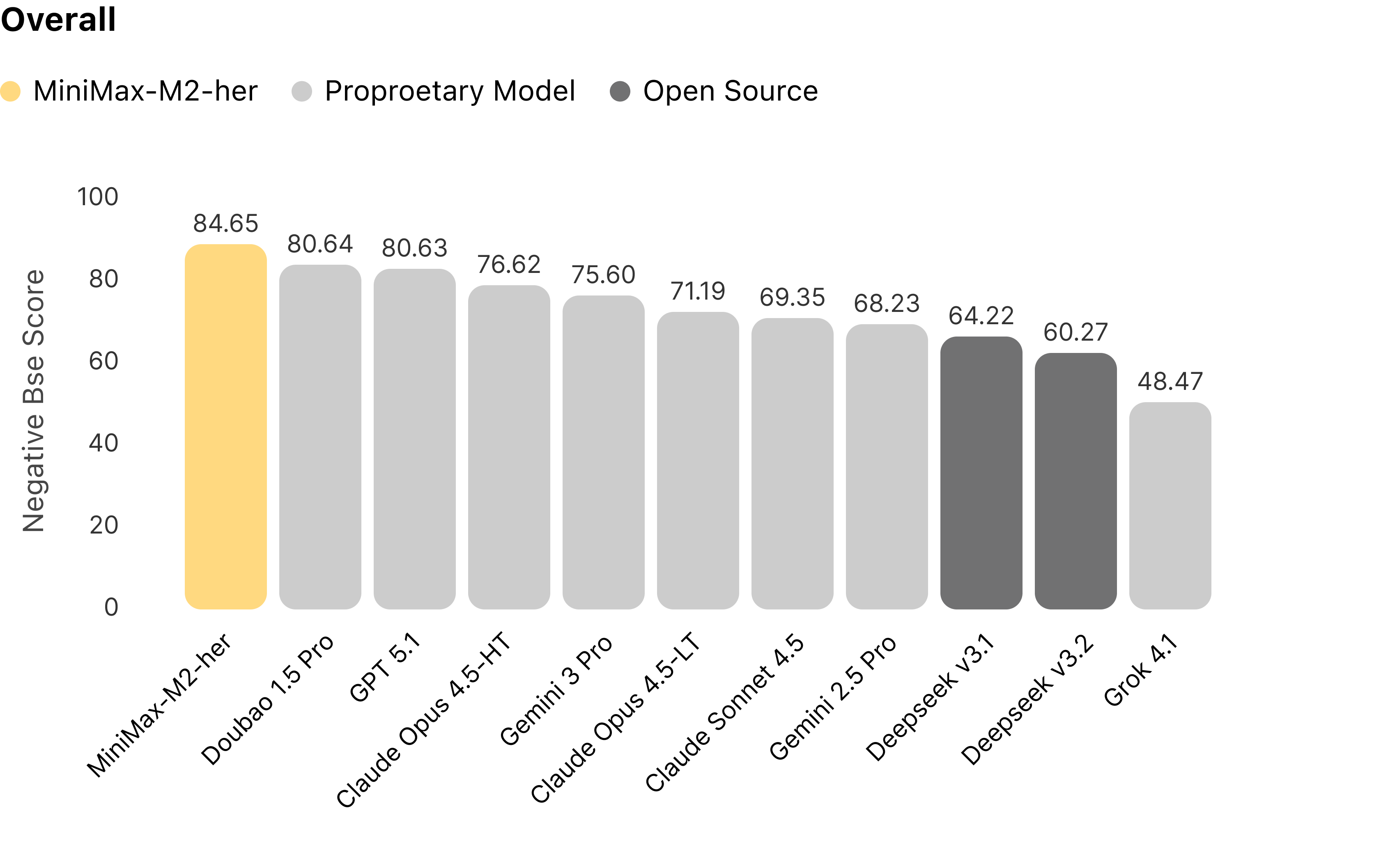 We systematically evaluated mainstream models using Role-Play Bench, focusing exclusively on multi-turn dynamic interaction. The results are definitive: across extended 100-turn sessions, MiniMax-M2-her ranks #1 overall.